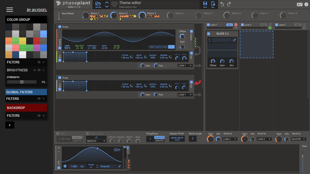 Phase plant UI has been replicated so you can see the changes live while your are editing. No need to load the theme into phase plant to see how it will look. -